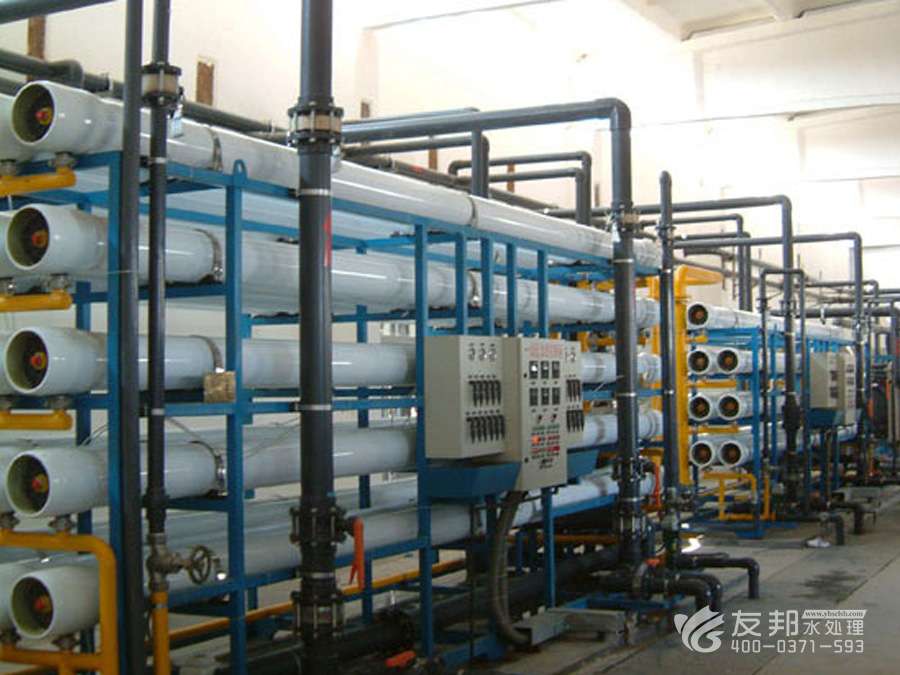 2、原水→原水加压泵→多介质过滤器→活性炭过滤器→软水器→精密过滤器→第一级反渗透→PH调节→中间水箱→第二级反渗透(反渗透膜表面带正电荷)→纯化水箱→纯水泵→紫外线杀菌器→微孔过滤器→用水点
