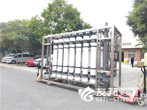 原水箱→增压泵→多介质过滤器→活性炭过滤器→增压泵→一超滤→中间水箱→臭氧灭菌→成品水箱→增压泵