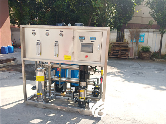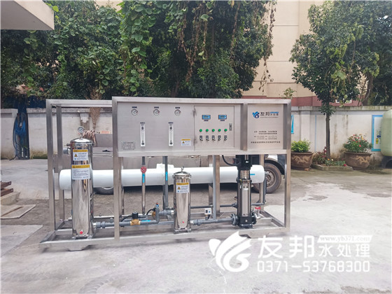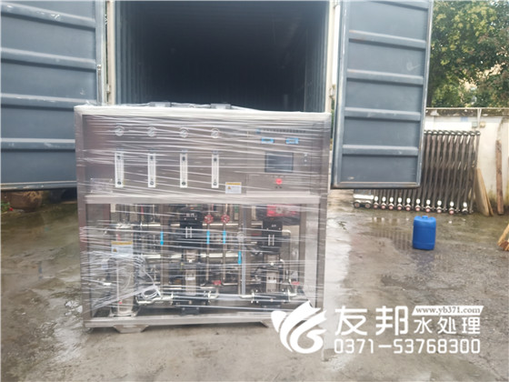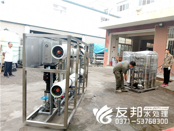 此套0.5吨纯净水设备是发往河南安阳用于金刚石加工行业。0.5吨双级纯净水设备全不锈钢一体机,整套系统包含不锈钢原水箱、原水泵、不锈钢石英砂过滤器、不锈钢活性炭过滤器、