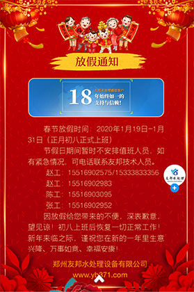 春节放假时间为:2020年1月19日至2020年1月31日,2020年2月1日正式上班,请大家提前安排好时间!按时返回上班。