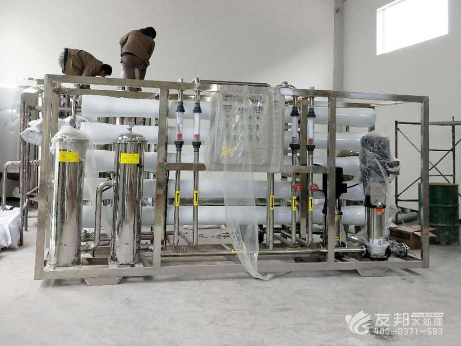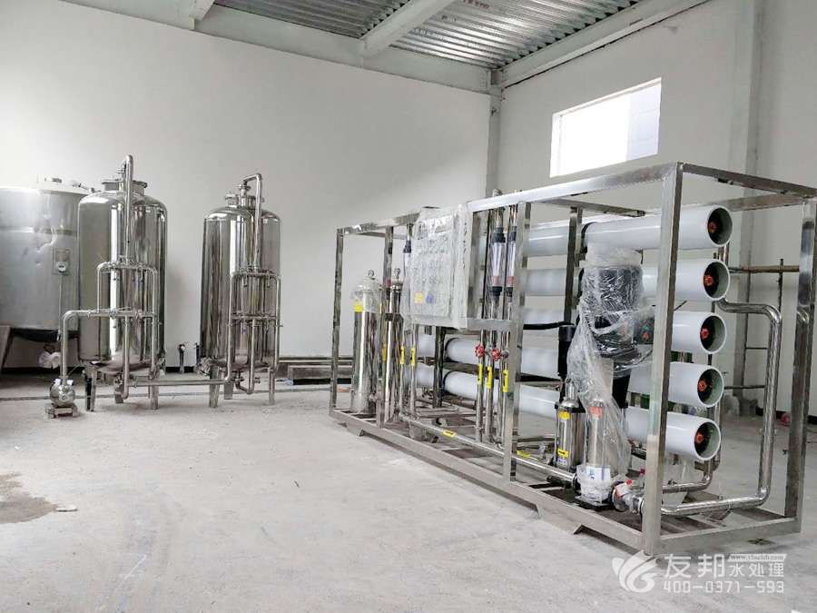 2、原水→原水增压泵→精密过滤器→电渗析过滤器→中间水箱→中间水泵→离子交换设备→紫外线杀菌器→微孔过滤器→纯水箱→用水点(传统工艺电阻率≥5MΩ.CM)