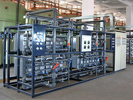 EDI又称为电去离子法,是目前比较先进的生产超纯水的方法,原水先经过双极反渗透处理后,水质中杂质的去除率在99%以上,但要想制造出超纯水,除去溶解在水中的微量元素和CO2等杂