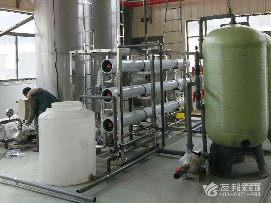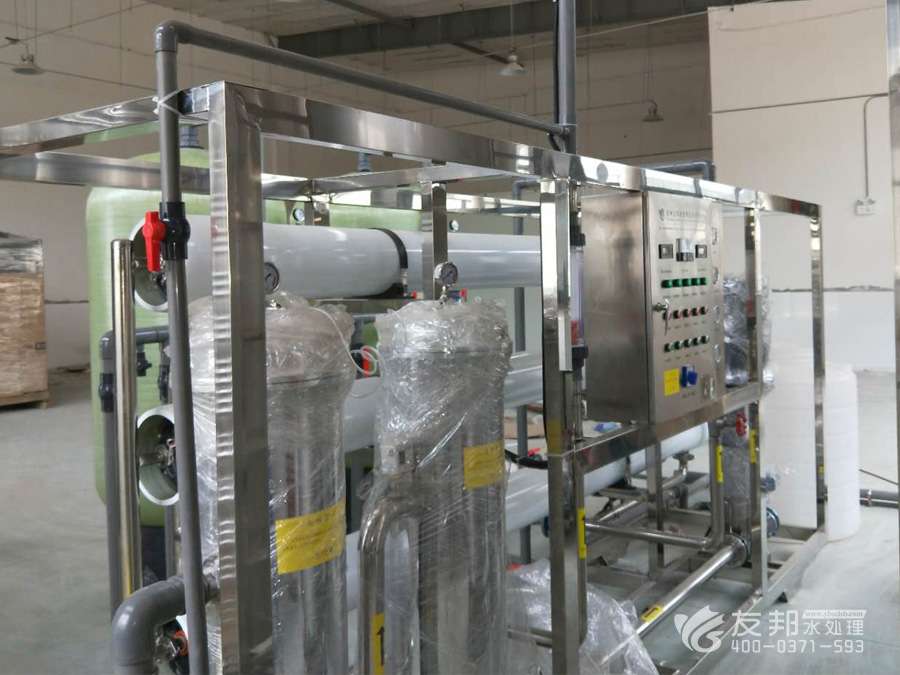为满足用户需要,尽可能地减少各级的污染,延长设备的使用寿命、减少操作人员的维护工作量.在工艺设计上,取达自来水标准的水为源水,再设有介质过滤器,活性碳过滤器,钠离子软化器、精密过滤器等预处理系统、RO反渗透主机系统、离子交换混床(EDI电除盐系统)系统等。 系统中水箱均设有液位控制系统、水泵均设有压力保护装置、在线水质检测控制仪表、电气采用PLC可编程控制器,真正做到了无人职守,具有更高的性价比和设备可靠性。
