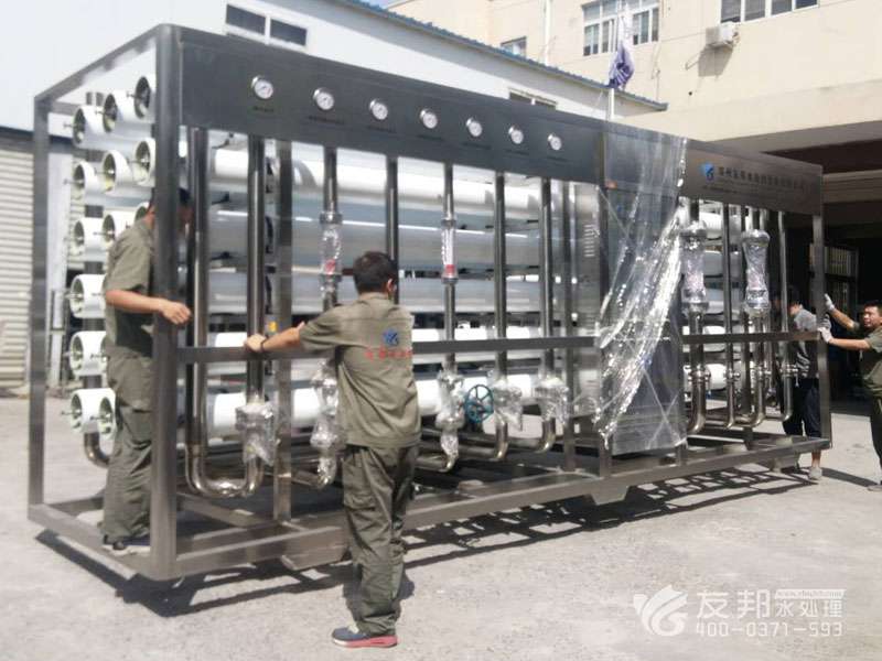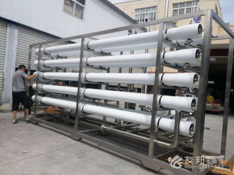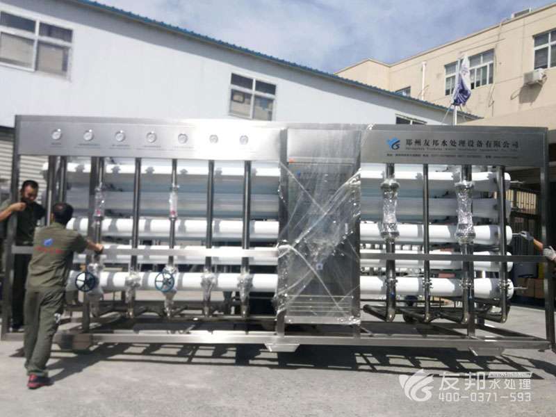 原水→增压泵(一用一备)→砂过滤器→炭过滤器→硬化器(根据地区不合选用)→精密过滤器→两头水箱→RO前水泵→精密过滤器→RO高压泵→RO反渗透零碎→RO水箱→RO水增压泵→EDI电去离子主机→去离子水箱→去离子水泵→抛光混床→终端紧密过滤→UV紫外线杀菌→设备用水