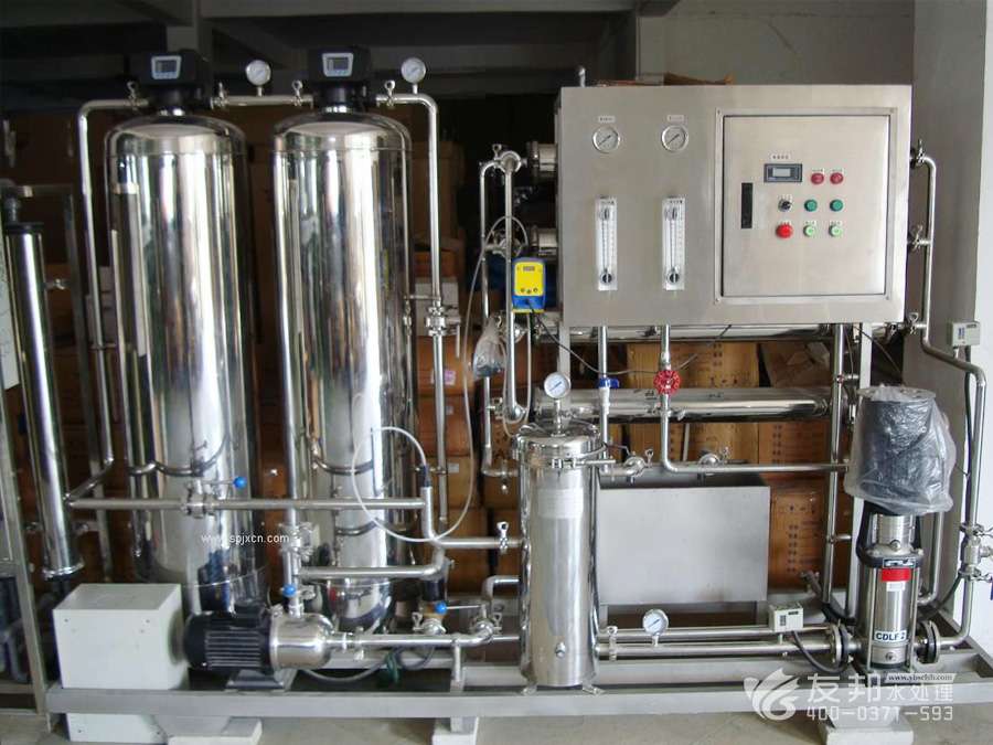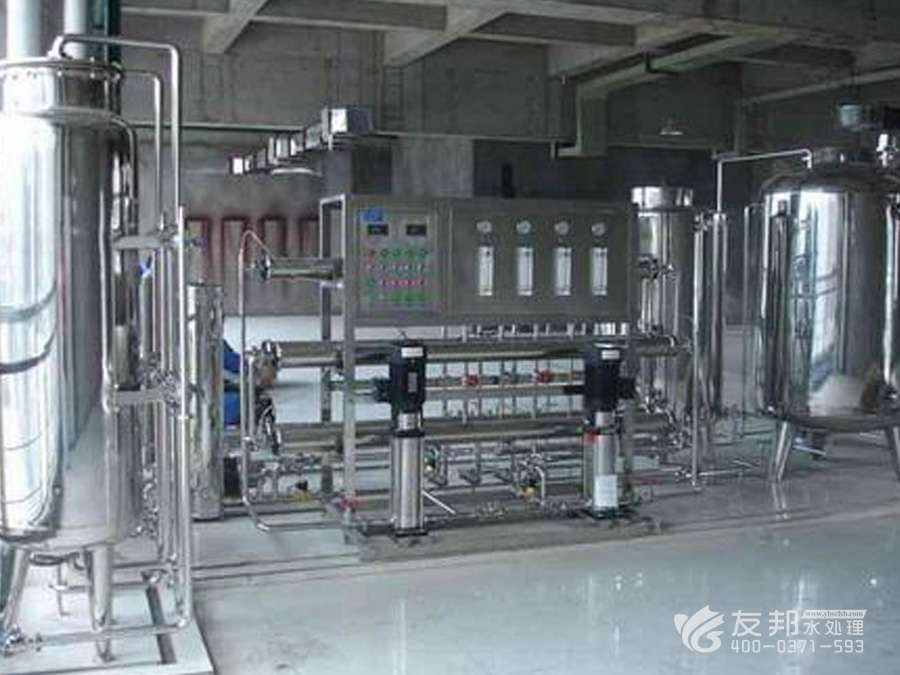 2、预处理→反渗透→中间水箱→水泵→EDI装置→纯化水箱→纯水泵→紫外线杀菌器→抛光混床→0.2或0.5μm精密过滤器→用水对象(≥18MΩ.CM)(最新工艺)。