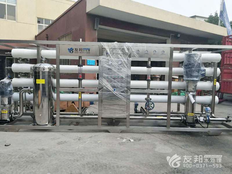原水→增压泵(一用一备)→砂过滤器→炭过滤器→硬化器(根据地区不合选用)→精密过滤器→两头水箱→RO前水泵→精密过滤器→RO高压泵→RO反渗透零碎→RO水箱