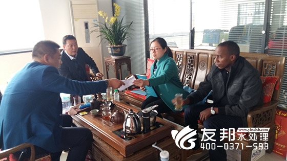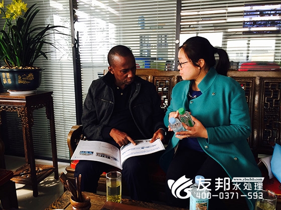 这是来自非洲摩洛哥地区的国际友人,来到郑州ued·体育网址订购纯净水设备,工作人员正在的详细讲解ued·体育网址的设备优势和成功客户案例。