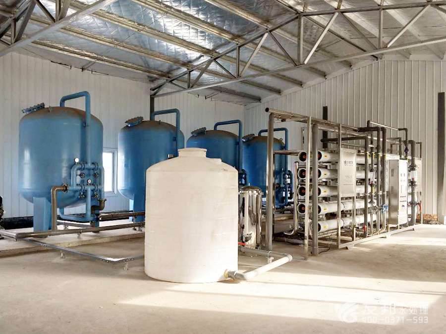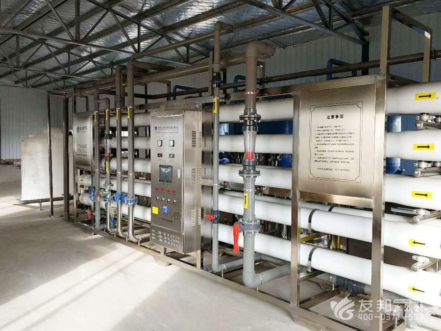 地下水或城市自来水——原水增压泵——石英砂过滤器——活性炭过滤器——加药装置(阻垢剂)——精密过滤器(10微米)——精密过滤器(5微米)—— 一级高压泵——一级反渗透过滤(可达到脱盐率98%)——加药装置(PH调节) ——二级高压泵——二级反渗透过滤(可达到脱盐率99.5%以上)——纯水箱