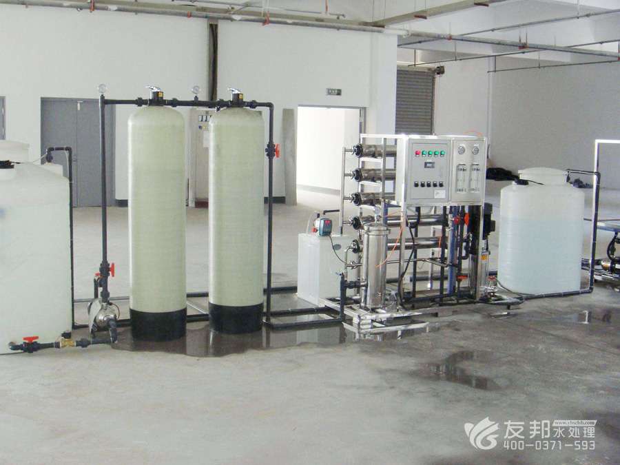 原水→原水加压泵→多介质过滤器→活性炭过滤器→软水器→精密过滤器→阳树脂过滤床→阴树脂过滤床→阴阳树脂混床→微孔过滤器→用水点