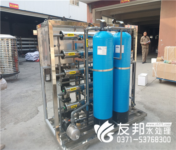 原水箱→增压泵→多介质过滤器→活性炭过滤器→保安过滤器→高压泵→一级反渗透→高压泵→二级反渗透→