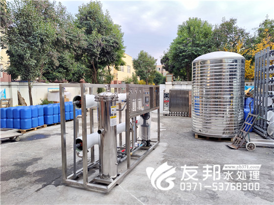 原水箱→增压泵→多介质过滤器→活性炭过滤器→保安过滤器→高压泵→一级反渗透→高压泵→二级反渗透→