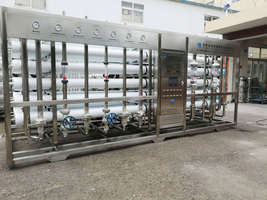 前置5μ微过滤器,保护高压泵及反渗透膜不受颗粒或其它硬物损坏。低压开关保护高压泵不会因供水停止而损坏。高效率、低噪音的高压泵,降低运行噪音,减少耗电。脱盐率大,运行压力低的卷式复合膜提高了产水水质及降低运行成本,且使用寿命长。产水、浓水各设有流量计以监视并调节运行出水量及系统回收率。产水电导率表连续监视产水水质。进水及排水压力表,连续监测反渗透膜的压差,提示何时需要清洗。自动停水阀以避免停机时水继续流入。快速冲洗阀门定时冲洗膜表面。降低污染速度。