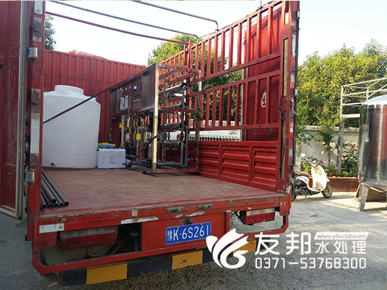 原水→增压泵(一用一备)→砂过滤器→炭过滤器→硬化器(根据地区不合选用)→精密过滤器→两头水箱→RO前水泵→精密过滤器→RO高压泵→RO反渗透零碎→RO水箱